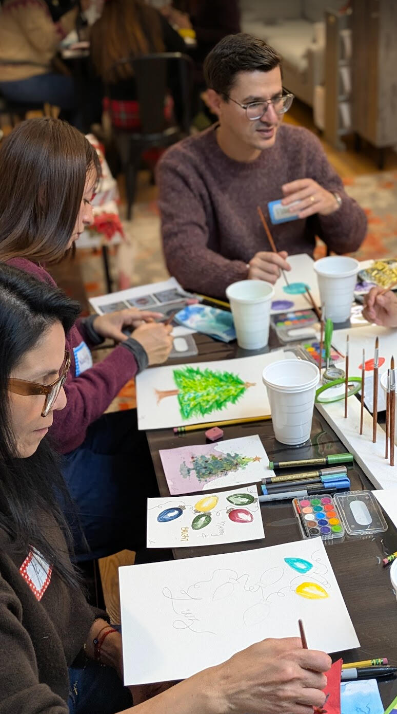 Holiday Watercolor Night was sold out and full of creativity, connection, and festive joy! A beautiful community came together to paint, relax, and celebrate through art, music, and conversation.